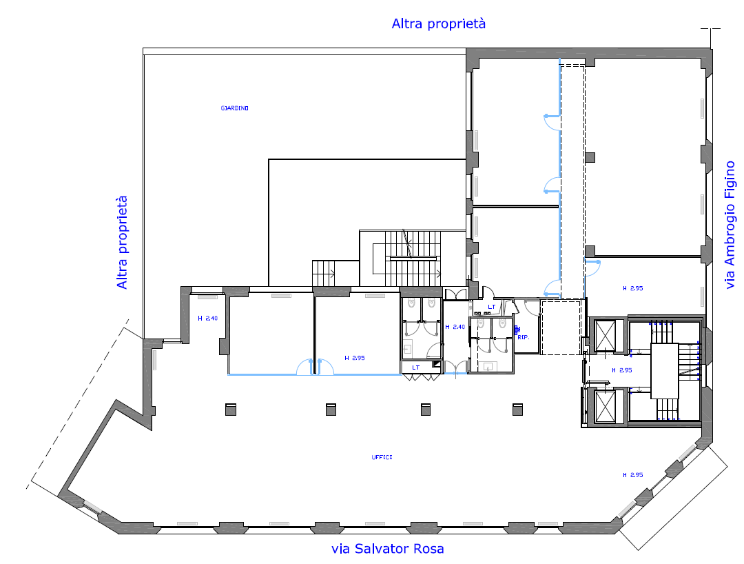 Quattro piani fuori terra ad uso uffici e un piano interrato che comprende un parcheggio esclusivo. L’immobile è dotato di reception all’ingresso e diventa la soluzione ideale per le più diverse attività di business grazie ad ampie stanze, sale riunioni, aree relax e open space che consentono di lavorare in modo comodo, versatile e accogliente.